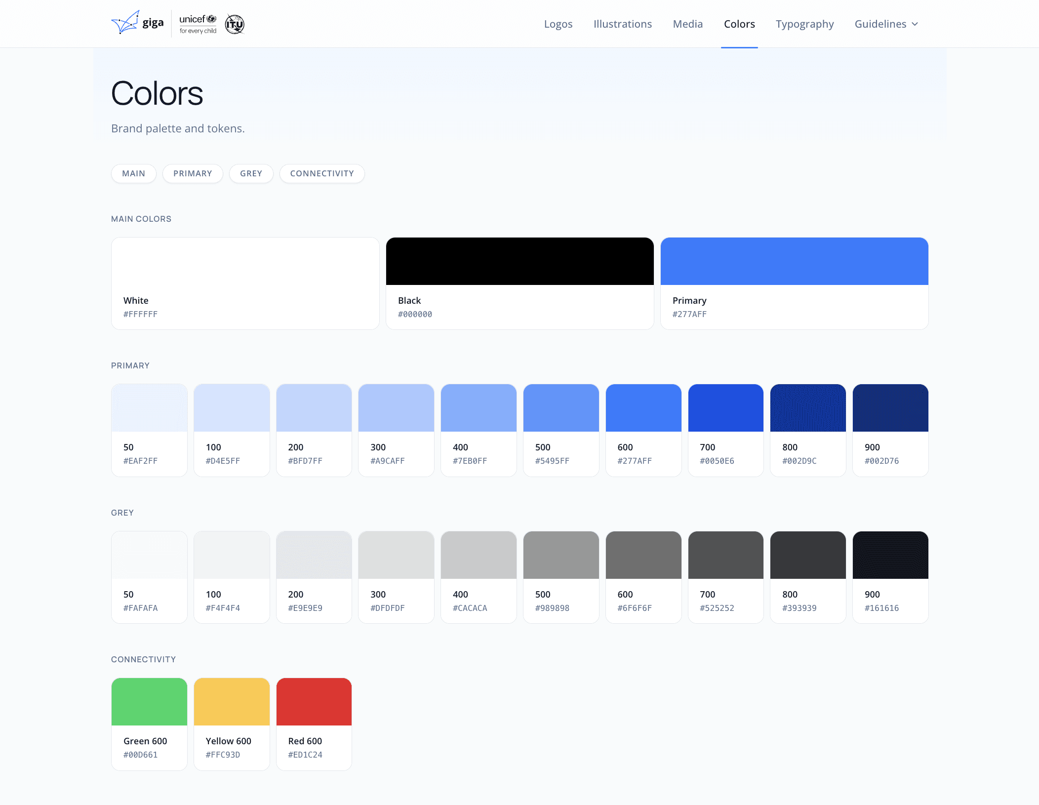Internal stakeholders and external partners needed fast, autonomous access to Giga brand assets: logos in the right format and color variant, hex codes, and typography. The existing situation had no dedicated tool. Assets lived across SharePoint folders and Notion pages, inconsistently maintained. Every request ended up as a Slack message to the design team, slowing everyone down and introducing brand inconsistency.